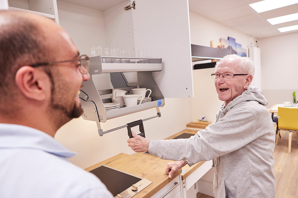 Die Fähigkeiten, die Aktivitäten des täglichen Lebens mit oder ohne Hilfsmittel zu bewältigen, sind elementar für einen selbständigen Alltag zu Hause. Aus diesem Grund führen wir eine detaillierte Analyse der Selbsthilfefähigkeiten bei den Aktivitäten des täglichen Lebens durch. Darauf aufbauend trainieren wir diese und bieten zusätzlich die Erprobung von Hilfsmitteln und Wohnraumanpassung in einer Musterwohnung an.