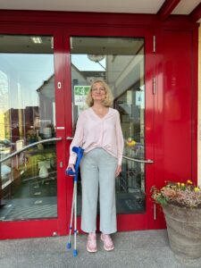 BU: Zurück im Betrieb, zurück im Alltag: Ulrike Sprenger ist nach gut zwei Wochen schon wieder sehr aktiv und benötigt die Gehhilfen immer seltener.